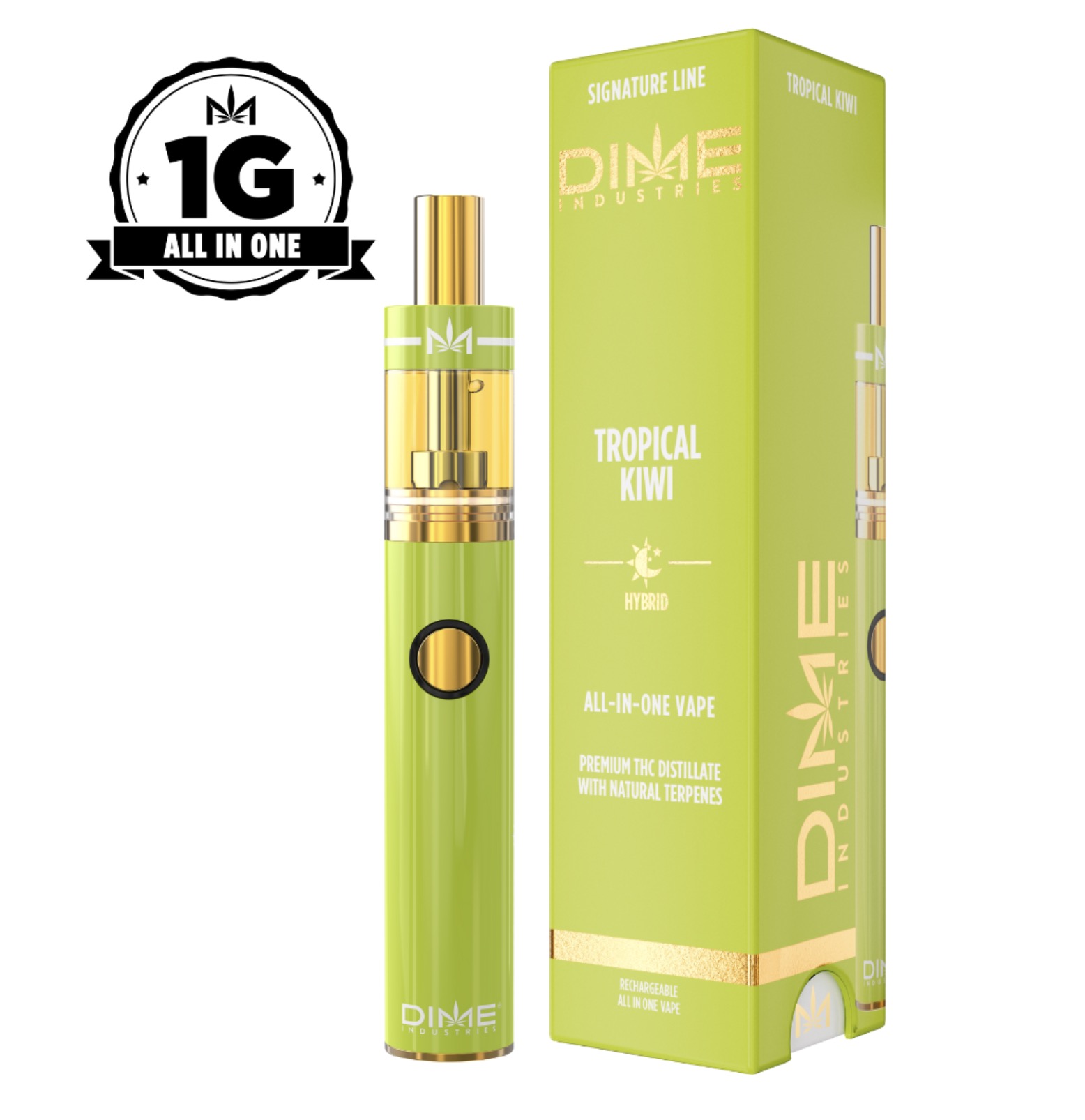 Tropical Kiwi presents an exceptional hybrid blend born from the union of 'Trop Cherry' and 'Kiwi Kush.' This delightful mix offers a sweet and creamy palette accented with the vibrant flavors of kiwi and cocktail cherries. Experience a surge of blissful euphoria and a wave of creative energy all enveloped in the tranquil comfort of a tropical escape. Powered by Dime Industries hardware this device offers 3 heat custom settings (4.2v to 3.2v) pre-heat function easy air flow and is USB-C rechargeable. Give your buds a delicious treat backed by the industry's most powerful battery!