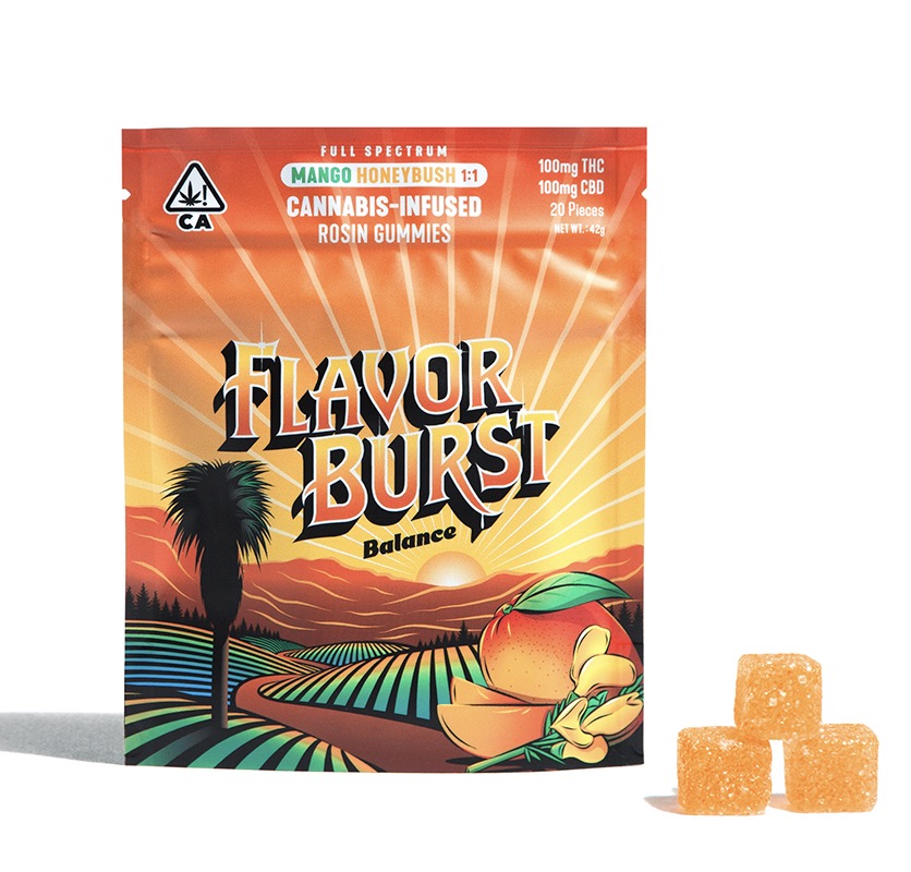 Vegan gummies in an exotic flavor combination of Mango Honeybush that will delight the senses. A nice balance of both THC and CBD as a 1:1 ratio. Flavorburst Farms is a state of mind... Begin your journey today! Handcrafted using only the finest plant based ingredients and solvent-free expeller pressed hash rosin.