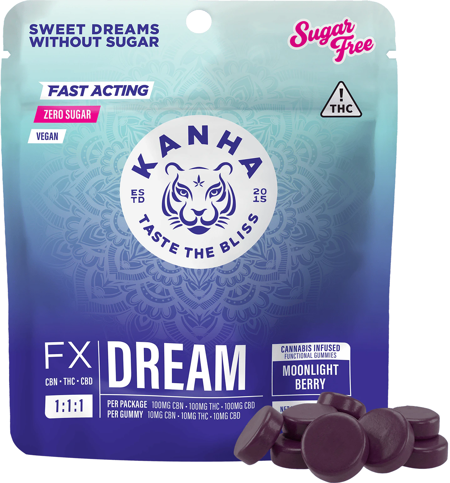Drift into the night with our sugar-free Moonlight Berry gummies. Featuring a balanced blend of THC, CBN, and CBD, and functional adaptogens like chamomile, passion flower, and reishi mushroom, to help you ease into your night, relax, and unwind.