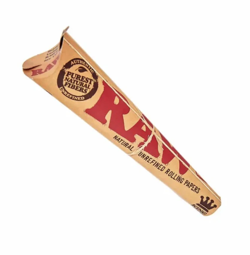 RAW King Cones are pure less processed cones unlike anything that you have ever seen or smoked. Because they contain a hybrid blend of unbleached (not chlorine whitened) fibers the cone is a translucent natural light brown color. Each cone is watermarked with a patented CrissCross watermark. This special watermark helps prevent runs and maintains the smooth even-burning characteristics that RAW is famous for.
