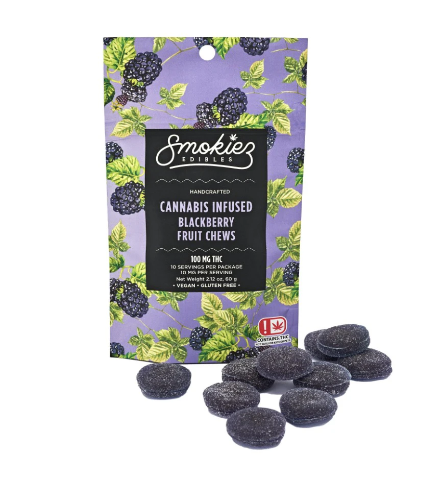 Now enhanced with real cannabis terpenes! Smokiez Terpene-Enhanced Indica Blackberry Fruit Chews are NOT YOUR AVERAGE GUMMY™. These delicious Fruit Chews are a tasty and satisfying way for your customers to medicate! They are also Vegan Gluten-Free Dairy-Free and contain NO High Fructose Corn Syrup. Each of our mouth-watering Fruit Chews contains 10 mg of THC and are made with our high clarity cannabis distillate for great taste.
