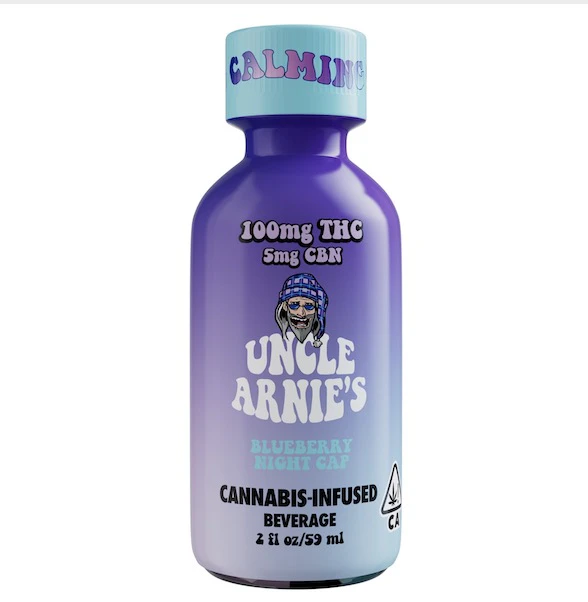 Knock out with the travel sized Uncle Arnies 100mg THC Blueberry Night Cap Shot. This two ounce shot is infused with 5mg of CBN a cannabinoid known to help you wind down. Feel relaxed knowing you have a night cap waiting for you after a long day at work. Just like the classic 8 ounce drinks these are infused with nano-emulsion technology. You can control your high or get as lit as you want by using the dosed measurement system. Expect your rocket to blast off in 20-40 minutes.